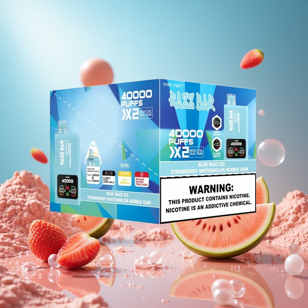 Razz Bar 40000 Puffs Blue Razz Ice-Strawberry Watermelon Bubble Gum Power Screen Display