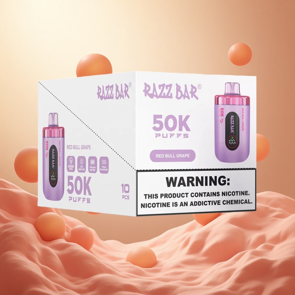 Razz Bar 50K Puffs Red Bull Grape Mesh Coil Rechargeable
