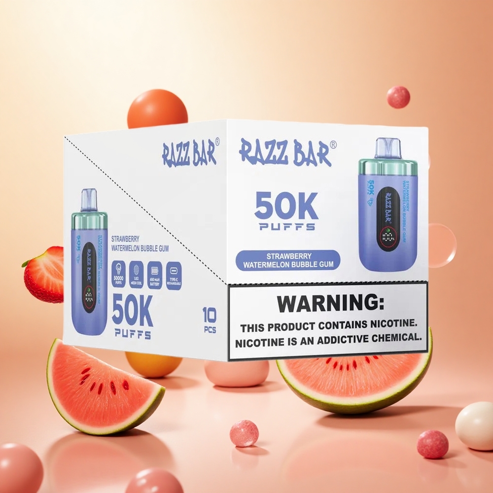 Razz Bar 50K Puffs Strawberry Watermelon Bubble Gum Mesh Coil